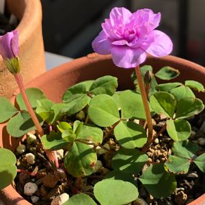 ☘Oxalis Pom Pom☘ 大鉢も素敵なんですが。 今年は、こんな小さな鉢も作りました。 1.5号鉢かな? 2球植え付け。 鉢が小さいせいか、花はかなり小さめ🌸 それが、また可愛い😍んです。 つぎのツボミ達も控えてますよ。