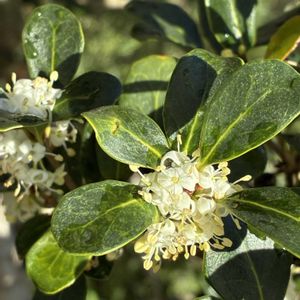 我が家の小さな庭〜🤍🌿 〜ヒイラギ(柊)〜 1️⃣2️⃣ 〜マルバヒイラギ〜 その名の通り丸い葉で優しげです🫶 魔除けにはならないかなぁ🥳 我が家の30年超古株庭木🌲 甘い芳香〜 今朝の初雪のように真っ白満開です❄️🤍 3️⃣4️⃣ 〜斑入りヒイラギ〜🪴 我が家の古〜い盆栽🪴😆 花数は少ないけど斑入りがお気に入りです🌿 5️⃣ 11/29 公園散歩のヒイラギ やっぱギザギザ葉は厄除けよねー😆 今、まさに満開🤍🤍🤍🌿 今日は冷えますねー🥶 暖かくしてお過ごしくださいね♪