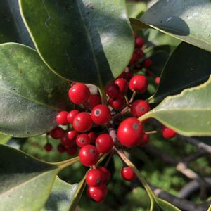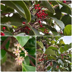 我が家の小さな庭〜🌳 〜クロガネモチ(黒金餅)〜 モチノキ科 常緑中高木 今年は案外、赤い実が付きました\(^o^)/ 2m以上はある高木、上の方に😆 やはり太陽いっぱい浴びれるからかな ぷるぷるツヤツヤの赤い実🔴 ↙️ 5月に咲いていた雌花🌸 とても可愛いお花です💕 縁起木で常緑の葉が有難い庭木です🫶 2枚目… 公園の植栽🌳 11/29 撮影 樹形良い大木に鈴なりの赤い実🌳🔴 大好きな公園、毎年これも楽しみに😊🎶