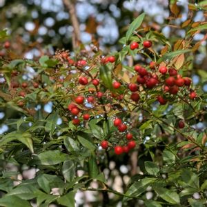 庭木🌳 南天 お多福南天 ヒイラギ南天 午前中にモサモサになっている南天を透かし剪定した🧤 スッキリした〜🎶🎶☺️