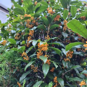 🍀キンモクセイ🍀 ウチのキンモクセイはまだ蕾です〜なのでまだ鮮やかなオレンジではありません。😅💦 今年は開花が遅いですね。🤔 そばに寄るとほんわかいい香りが漂ってきます。😀💕 🏷今日のお花 🏷木曜日は木の花 に参加させて下さいね。