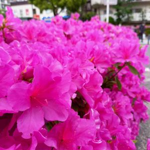 目にも鮮やかな駅前の植栽。 真新しい制服姿の学生さんのグループは コロナ禍でも楽しそう♪ 若いっていいね。