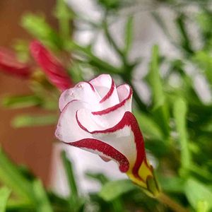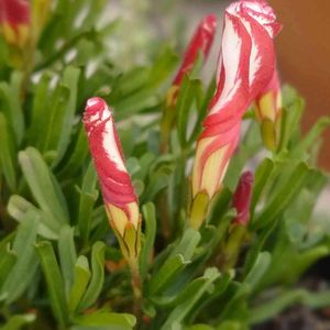 赤と白の鮮やかな色 ストライブの花 オキザリスバーシカラーです。