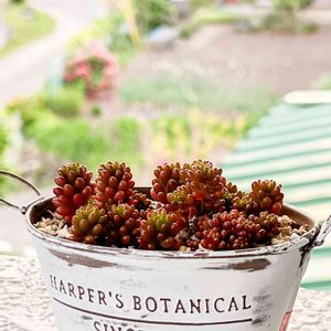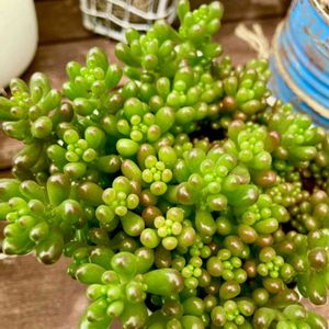 セダム🌿乙女心・オーロラ・虹の玉・レッドベリー つぶつぶ多肉ちゃん、大好き😻💕 なので、つぶつぶ達をかご寄せにしてみました🧺 早くモリモリになるといいなぁ♥