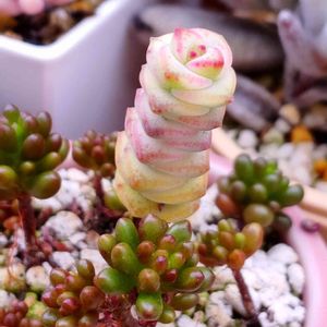 おはようございます 毎日🌂梅雨空の様です⋆̩☂︎*̣̩ 今朝のpic 🏷毎月28日はつぶつぶの日参加します 『パンクチュラータ』クラッスラ属 昨年9/27一目惚れでメル○リでポチッと 抜き苗でお迎え育つか心配してましたがスパルタで3倍になりました😁 水を控えると🌱が白くなり 冬は紅葉し秋に花が咲くと四季折々楽しめるパンクチュラータ(*Ü*)ﻌﻌﻌ♥ 根元はレッドベリーを挿し穂してみました 最初はパンクチュラータだけだったけど、広いスペースが勿体無いから少しずつ隅っこに入れてみました🤣 結果寄植えみたいになったわ(^^;ワラ つぶつぶしてて可愛いね〜😍 お花咲いてくれるかなぁ❁✿✾ ✾✿❁︎ 今が生長期モリモリしてくれて嬉しい(ˊᵕˋ)︎︎︎︎✌︎ 今日1日頑張ったら10連休٩(Ü)۶♥︎︎ 張り切って行ってきまーす🚗💨💨 see you☆彡.。