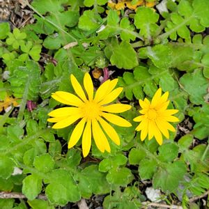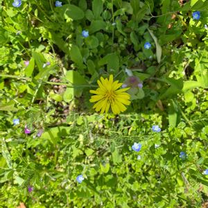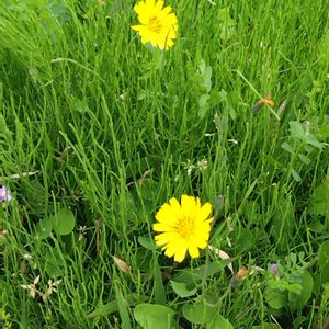 ご近所さんの畑の隅で黄色いお花が… ジシバリ…オオジシバリ? はっきりわかりませんが とても可愛いお花です🌼🌿