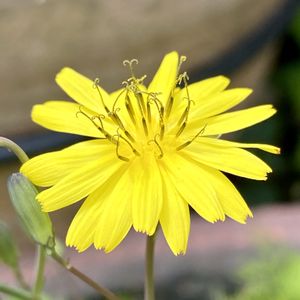 「あんたどこから来たの?」 セダムの鉢に入り込んで、我が家気取りで咲いています。 綿毛の付いた種が、風に乗って運ばれてきたのでしょうね。 可愛いから許します。