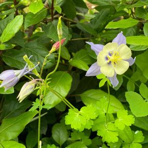セイヨウオダマキ コルベット なんと面白い花姿でしょうか~😍🎶。横向きと正面が撮れました。 今年の春先に、義理の姉から苗をもらって育てたセイヨウオダマキ。 黄色の花を咲かせてくれました😍🎶。 今年、色々な苗をもらってきたので、他の苗の成長も楽しんでます🤗🎶。