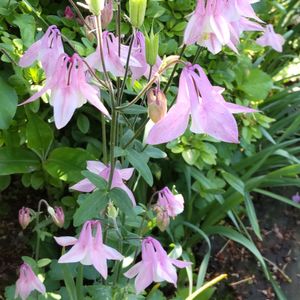 優しい薄紫の西洋オダマキが下向きに咲いています。 西洋オダマキは ヨーロッパ原産のオダマキとアメリカ原産の品種の交配で生まれた園芸品種です。 花色は薄紫のほか 白 ピンク 赤 黄色 紫 赤紫 青など様々なものが創り出されています。 オダマキの名は中心を空洞にして巻いた麻の糸玉 オダマキ(苧環)に花の形が似ているところから名付けられたとか…。 ヨーロッパ 北アメリカ原産。 キンポウゲ科オダマキ属の宿根草。