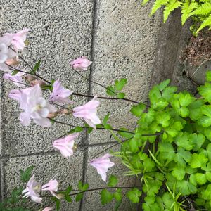 散歩で見つけた見たことのない桃色のお花 西洋オダマキでした 花びらが細くてキク科の花みたい もしくは四手辛夷⁉️ 🏷木曜日は桃色