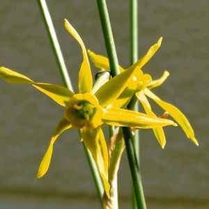 水仙 "オータムジュエル" ヒガンバナ科 蛍光色の緑がかった黄色は 初めて見る色でした✨ 細い花弁がキュートです🥰 秋咲きの園芸品種 水仙の中では1番早く咲くそうです💛 花期は11〜1月 2023.11.22撮影