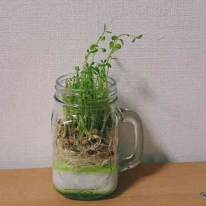 豆苗 食べたあとの水栽培 楽しいな🎵 ぎんが「ちっ、ネコ草じゃないのかよ💢」