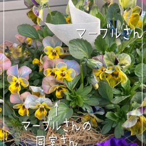 マーブルさんとお部屋(鉢)をシェアをしているタグなしビオラさん。 かなりマーブルさんの影響を受けている様子?!(≧з≦) 遺伝子🧬的には全く混じってないハズなのに不思議です。 タグなしさんは、イエロープラスブルーグレーでした꒰ ´͈ω`͈꒱