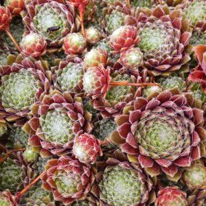 可愛い王冠型😽👑 センペルビウム・ジョルジェットさん😻❤️🤍💚 一昨年の子株ちゃん達を植えたプランターで お孫ちゃんも産まれてます😸❇️