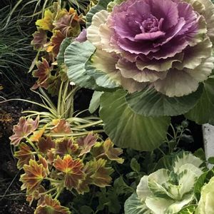 おはようございます💠 葉牡丹とモミジバゼラニウムとの組み合わせも.....💐