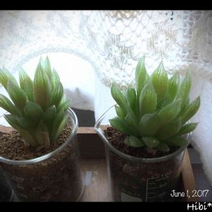 (o・ェ・o)ノコンバンワ サングリア飲み過ぎた〜〜🍷(☝︎ ՞ਊ ՞)☝︎うぇーーい💕 今日のpicじゃないけど、ハオさんの葉の窓がキレイやったのでパシャりしたもの。 右の子と左は同じ種類なんだけど、左の子そろそろ水が欲しくなってきたのかな?? うちのハオさんは気がつくと葉が開かないでシャキーンと上になっちゃうの😅閉じてくる。水やり厳しすぎなのか?笑 ビーカー植えもそろそろ限界っぽいから植え替えしよっ😁 明日は出荷と仕入れしにいこー🚗