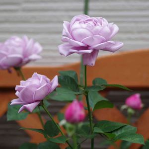 ブルーバュー 中輪種では珍しい紫系の花で早咲きで花つきも良いらしいです 優しい紫で咲きました 香りは微香^^💕