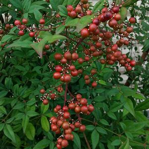 南天の実が少しずつ緑から赤へと変わるその瞬間がほっこりします。今日は仕事終わりにセイタカアワダチソウとナンテンを撮影しました❗️南天の赤い実は中国では縁起の良いものとして植えられているみたいで日本でもあちこちに植えられているのを見かけます。 そんな南天ですがとても恐ろしい秘密が😱 南天(ナンテン)は植物全体が有毒であり、特に実と葉には毒成分のアルカロイドが含まれ、大量に摂取すると意識障害や呼吸麻痺などを引き起こす可能性があります。ただし、漢方薬の原料として利用されることもあり、専門知識がない限り自己判断での摂取は危険です。 主な毒性成分と症状 実(南天実):ドメスチン、ナンテニンなどのアルカロイドを含みます。多量に摂取すると、知覚や運動神経の麻痺、大脳や呼吸中枢の麻痺などの症状を引き起こす可能性があります。 葉(南天葉):ナンジニンなどのアルカロイドを含みます。微量含まれていますが、大量に摂取すると同様に有毒です。 全体:樹皮、新芽、葉、実など株全体に毒が含まれています。 注意点 乳幼児の誤食:毒性があるため、特に乳幼児が誤って口に入れないように注意が必要です。 ペットの誤食:人間だけでなく、犬や猫などのペットにも有毒であり、誤って摂取すると重篤な症状を引き起こす可能性があります。 専門家以外での摂取禁止:薬用として使われることもありますが、専門知識がない自己判断での摂取は非常に危険です。 民間の使用:咳止めなどに利用される場合がありますが、これは専門家が用いる場合であり、安易に民間療法を試すのは危険です。 南天(ナンテン)の名前の由来には、中国名の「南天竺(なんてんじく)」や「南天燭(なんてんしょく)」、「南天竹(なんてんちく)」を音読みしたとする説があります。特に、赤い実を灯火に見立てた「南天燭」説や、株立ちした姿が竹に似ていることから「南天竹」と呼んだという説が有力です。また、「難を転ずる」という言葉の響きから、縁起木として広く親しまれてきました。 名前の由来(語源) 中国名由来説:南天の名前は、中国の漢名である「南天竺」や「南天燭」「南天竹」を略して音読みしたものが由来とされています。 南天燭説:秋に赤く熟す実が、灯火のように見えることから「南天燭(なんてんしょく)」と名付けられました。 南天竹説:複数の幹が立ち上がる様子が竹に似ていることから「南天竹(なんてんちく)」と呼ばれたことに由来します。 日本で「縁起木」とされる所以 「難を転ずる」の語呂合わせ:植物としての南天の響きが「難(ナン)を転(テン)じる」に通じることから、古くから縁起の良い木として親しまれています。 厄除け・魔除け:特に江戸時代頃から、家の中に邪気や災いが入るのを防ぐとして、鬼門や裏鬼門に植えられるようになりました。 正月飾り:おせち料理の飾りや、松竹梅と並んでお正月飾りとしても用いられ、日本人に馴染み深い植物です。