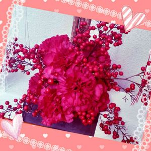 カーネーションと南天 出先で見つけました♡ お年賀用です 後ろに松が入ってます… 真っ赤なお花で 小洒落た感じ 素敵でした♡ 🏷️真っ赤な火曜日