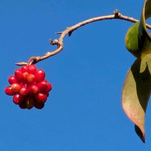 サネカズラ (ビナンカズラ) 時に一つ、時にたくさんのツブツブを啄まれて、種は何処へと運ばれていく🔴 むき出しになった花床はヤマボウシの実に似ていなくもない……か? 乾燥させた集合果はよく煮てドロドロにして漉したものに砂糖を加え、熱いうちに飲むと、胃腸や咳止め、口内炎に効く南五味子(ナンゴミシ)という薬になるのだとか🟥 ツル性の茎を剥いて水に浸して出てくるネバネバは銀出し油といって、髪になでつけて整髪料にしたというのが、もう一つの名前である「美男葛」の由来だ👨 それなら「美女葛」でも良いようなものだけれど、髭にも使ったからかなぁ、と思う(σ ´灬` )σ 12月もワンダフルスタート!🏷 今年もラスト一ヶ月 よろしくお願いします♬