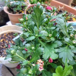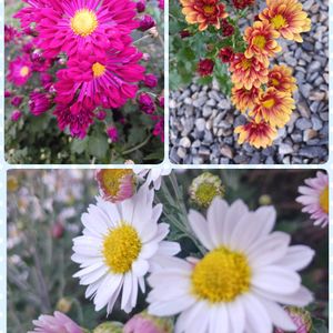 菊のお花🌼 庭で何種類か咲き始めています🤗 ①②☘️💛☘️ ③☘️💗☘️ ④❇️✨❇️ ⑤こんなかわいいお花も💞