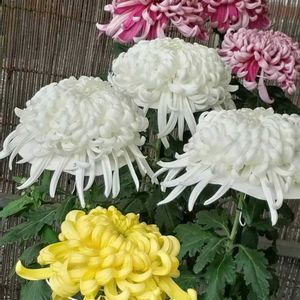 大輪の菊が咲きました…。🌼✨ 本当は摘蕾して1本に1輪を咲かせると直径20㎝くらいの大きな花になるはずでしたが、お世話が難しくて諦めました。 少し小さめの花がスプレー咲きになってます。🌼🌼🌼🌼 朝露や雨に当てないように軒下に入れました。