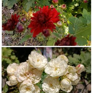 庭の菊(赤い花)上 も咲き出しました🎶❤️🌿 & グリーンアイス(下) 沢山咲いています(´V`)♪