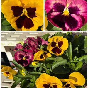 「家族でボニータモニター 2024」 No.5 クィーン・イエロー・ピー色 ようやく咲きました 約6センチ💛 ③枚目 下2枚 12月3日pic サングリアパンチ色 ④枚目 咲いたとき(下の写真)約5センチ 今約8センチ❤️ ⑤枚目 8号鉢モリモリになってきました (*˘︶˘*).。*♡✨ ココヤシファイバーでマルチングしました❄️