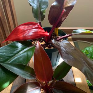 先日お迎えした フィロデンドロンサンレッドさん♥️ ロゼット状に 葉が展開してくれる ♥️まっかっかの葉が可愛い❤️ 私は貴女の紅いの葉に うっとり見とれてしまう そんな今日この頃