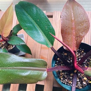 おはようございます☀️ 昨日は朝だらけすぎて投稿忘れてました🤣 タグが逆でもわからないと言われていたフィロデンドロンのふたり、葉の退色になんとなく違いが出てきました🤔 プリンスオブオレンジ🍊 赤❤️→茶🤎 サンレッド❤️🔥 赤❤️→黄💛 ………やっぱりタグ逆じゃない!? 感覚的には、オレンジが退色したら黄色だし、赤が退色したら茶色じゃない!? ウチの子の場合、なので他のお家の子はわかりませんが、とりあえず記録として… この子たちもお水嫌がらなくなってきたので、ちょいちょい葉水してます( ੭•͈ω•͈)੭💦🌱 ͛.*