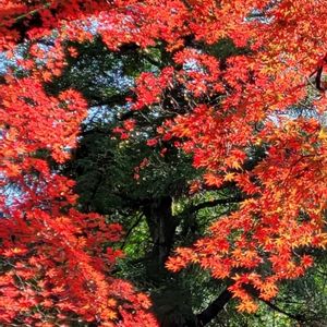 もみじ燃えゆる散策路 仰げば眩しいイロハモミジ