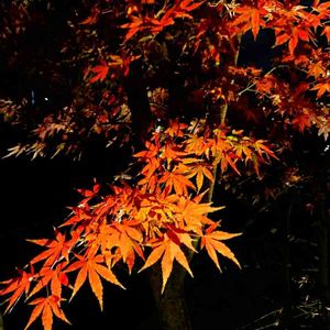 【No223 紅葉🍁】 近くの熊本大学の夜の紅葉🌉 モミジが紅葉🍁するのは🍁赤の色素アントシアニンが作られるからです。 気温が下がって、日照時間が短くなって、葉に糖分や水分の供給がストップします。そこで、緑色のクロロフィルが分解されて赤くなるのですね。 日中の天気がいいこと、昼と夜の寒暖差が大きいこと、適度な水分があることが紅葉🍁が美しい条件です。