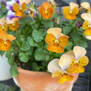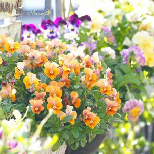 本日の戦利品❁⃘ マンゴーカラーの小輪アンティークビオラ🥭 見元ビオラや絵になるスミレなど少しだけありましたが、お目当ての花日和さんは入荷なしでした。 こちらのアンティークビオラは素敵だったのでお迎えしました。 名前はついてないようですが、タグには幸花園と。 鳥取県からやって来たようです。 にしても見覚えのあるような色だな…🤔 何かの品種の型落ちなんじゃないかな👀と密かに思ってます。