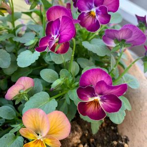 2枚目です😊🙏 ビオラ・アンティークビオラ💜💛 主人が選んだビオラですが、何だか可愛くて、ちょっと悔しい感じです😆笑笑 今日はお天気で日差しが気持ち良いです☀️