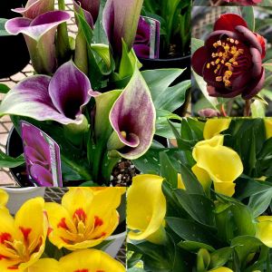 こんばんは 花夢里にいつの花はこれでお仕舞いです ↖️カラー キャプテンカルソ ↗️椿 ナイトライダー ↘️カラー キャプテンミロ ↙️ミニチューリップ ストレーサ 昨日お出掛けの沢山のお花を見ていただきまして、ありがとうございました