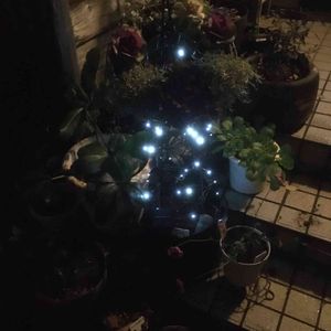 リースの下のポットに植える予定のパンジーは月末にくるので、それまではイルミネーションで誤魔化す