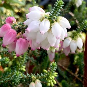 こんにちは 花夢里にいつの花木達です 四季咲きエリカ ふっくらももちゃん エリカ ダーリエンシス赤 素敵な花色ですね♡ ハーデンベルギア ミモザアカシア 背の高い鉢植えでした 千重咲き椿 バターミント 見ていただきまして、ありがとうございました