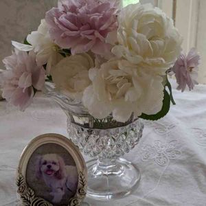 前picの🥀と+いくつか咲いていた🥀さん +チョココスちゃん飾ってみました😁 花びらが散ってしまった🥀も 可愛かったのでお皿に❁✿✾ ✾✿❁︎