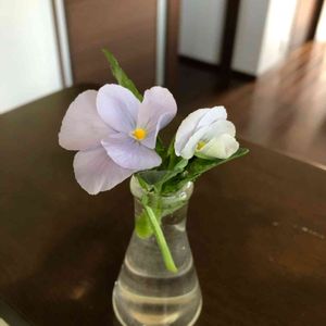ビオラビビヘブンリーブルー。 花がら摘みをしていると、いつもうっかり枝ごとポキっと取ってしまいます💦花がらの根元を狙いすぎて、枝を取ってしまうんですよね、、。お部屋に飾って楽しみます。