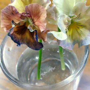 パンジー シェルブリエさん 優しいお色です🤗 カルーナと 葉牡丹で寄せて見ました🤗