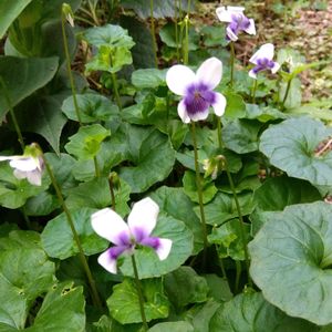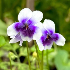 🐼🐾🐼🐾🐼🐾🐼🐾 🖤🐼パンダスミレ🐼🖤 🐼🐾🐼🐾🐼🐾🐼🐾 長い茎の先に可愛らしいお花が咲くのが素敵です♥️ ランナーを出して増えていくので、グランドカバーにもなります🍀*゜ 春から秋まで咲いてくれる宿根草なのも良いですね💕︎ ただ、ツマグロヒョウモンいう毛虫にいつも、葉っぱを食べ尽くされちゃうんです💦 それでも、必ず復活するので、凄い生命力です❣️ 今年は、まだ被害がないけど…