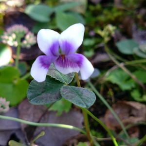 パンダスミレ🐼💜 夏にはどんどん姿を消していき、雑草に占拠されていた鉢ですが、気がつけば復活していてお花も咲いていました🐼💜🐼💜 これからお花の時期だったかな?🤔 何年経ってもよく分かりませんが😅とりあえず肥料でもあげておこうかな?