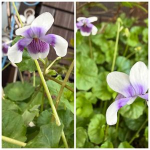 裏庭のパンダすみれ🐼 花期はいつなのだろう。時々咲いている。 鉢から脱走したものが、元々球根を植えてあったスペースに増殖してしまった。 やっかいだけどいないと寂しい。 どうしようか迷っている。