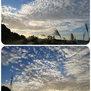 2022年10月27日 アサギマダラ再来🎶 19日飛来の蝶々🦋に比べて少し小さく動きもゆっくり。 時間は昼過ぎと同じでも2時間も滞在。 羽を広げてのんびりした姿を撮ることが出来ました。🎶 昨日の夕景を添えて!