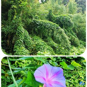 葛の花🎵 ラッキーの散歩道を通せんぼする葛は葛粉や葛茶として役立つのに あちらこちらで モンスター化した葛の被害が目立ちます😫