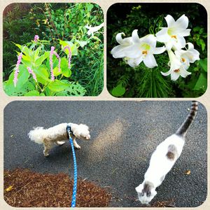 蓼(タデ)&タカサゴユリ 「蓼(タデ)食う虫も好き好き」の諺の蓼もこの辺ではあまり見かけなくなりました😩 道端や高速道路に沿って沢山咲いているユリが気になり検索してみると 「タカサゴユリ」とは、台湾原産のユリで、1924年に庭植えや切り花用として日本に持ち込まれたもので、花は「テッポウユリ」とよく似ていますが、花の外側に赤い筋が入るので区別することができます。葉はテッポウユリよりも小型で密についており、「ホソバテッポウユリ」と呼ばれることもあります。 更に外側に赤い筋がないものは「シンタカサゴユリorシンテッポウユリ」と呼ばれると書かれていました。 外来種は強いですね😱❕ そして数年前からラッキー散歩で出会う野良猫くんも強くて、オヤツ目当てにラッキーを無視して私の足元にやって来ます。 ラッキーは吠えずに一緒にオヤツを食べています😊🎶