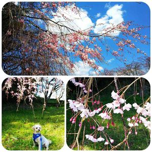 今日も4月にしては 寒い日でしたが ラッキーは張り切ってお散歩🎶 近くの公園の 毎年綺麗に咲く枝垂れ桜🌸 今年は台風の塩害もあってか 花数も少なくちょっと残念😆
