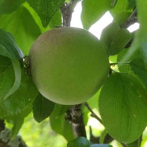 子供らと氏神さまにお詣りに。 参道の梅の木に実がなっていました。 そろそろスーパーなどでも梅の実が出回る季節ですね。