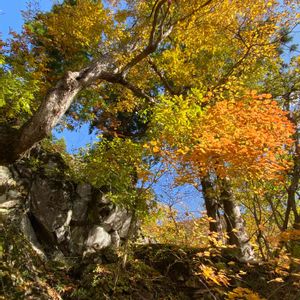 北信地域の修験神社参道。 神社まであとわずかの所で、 道が二つに分かれました。 緩斜面と急斜面コース。 行きは急斜面にしました。 ほんの少しの高さですが、 鎖場⛓がありました。 その上にある紅葉🍁