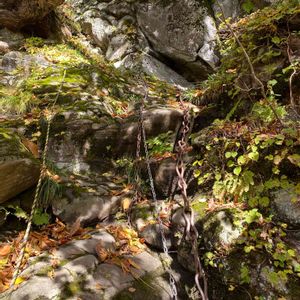 北信地域の修験神社参道 神社まであとわずか。 鎖場を越えていく。 高さは高からず低からずといったいったところか。